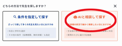もっと希望に沿った先生を探した場合、新機能の「AIに相談」を使うことができます。